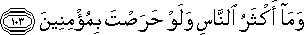 | 12.103 | And though thou try much, most men will not believe. | Wa Mā 'Aktharu An-Nāsi Wa Law Ĥaraşta Bimu'uminīna |