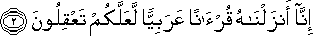 | 12.2 | Lo! We have revealed it, a Lecture in Arabic, that ye may understand. | 'Innā 'Anzalnāhu Qur'ānāan `Arabīyāan La`allakum Ta`qilūna |