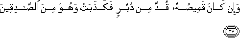 | 12.27 | And if his shirt is torn from behind, then she hath lied and he is of the truthful. | Wa 'In Kāna Qamīşuhu Qudda Min Duburin Fakadhabat Wa Huwa Mina Aş-Şādiqīna |