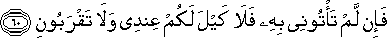 | 12.60 | And if ye bring him not unto me, then there shall be no measure for you with me, nor shall ye draw near. | Fa'in Lam Ta'tūnī Bihi Falā Kayla Lakum `Indī Wa Lā Taqrabūni |